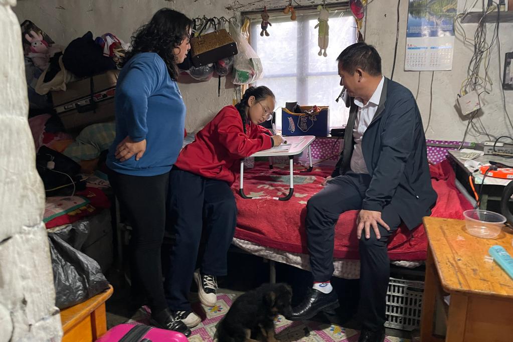 9月6日,在漠河市北極鎮(zhèn)北極村,馬建國到學(xué)生家中家訪。新華社記者楊思琪 攝