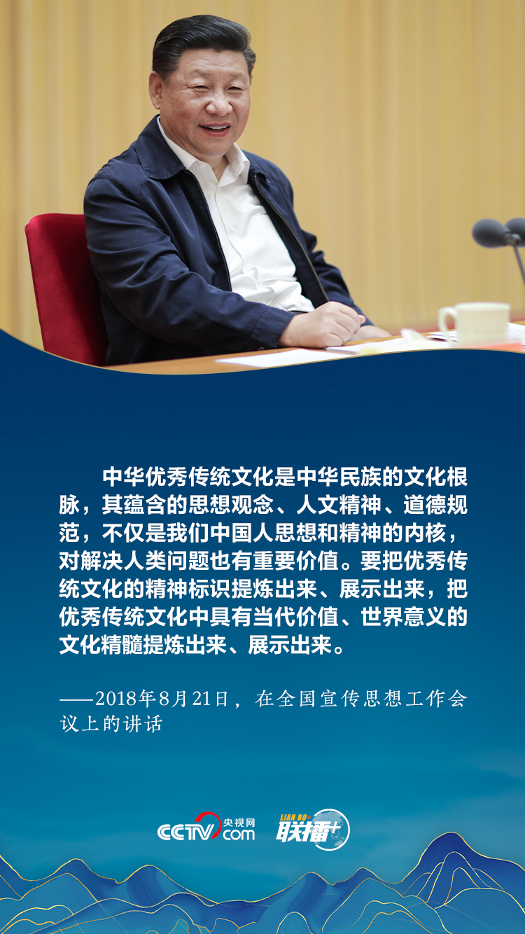 聯(lián)播+“中華優(yōu)秀傳統(tǒng)文化是中華民族的精神命脈,是涵養(yǎng)社會(huì)主義核心價(jià)值觀的重要源泉,也是我們?cè)谑澜缥幕な幹姓痉€(wěn)腳跟的堅(jiān)實(shí)根基。”