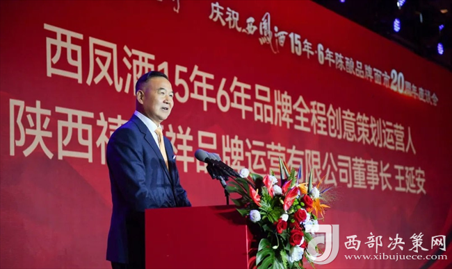 西鳳酒15年6年品牌全程創(chuàng)意策劃運營人、陜西禧福祥品牌運營有限公司董事長王延安發(fā)表講話。王延安董事長對支持西鳳酒15年6年陳釀品牌發(fā)展的西鳳酒廠各級領(lǐng)導(dǎo)、全省合作盟友、供應(yīng)商、媒體朋友及社會各界朋友表示感謝!風(fēng)雨同舟20載,攜手并進創(chuàng)輝煌。一切美好生活的實現(xiàn)都包含在“禧福祥”三個字里。