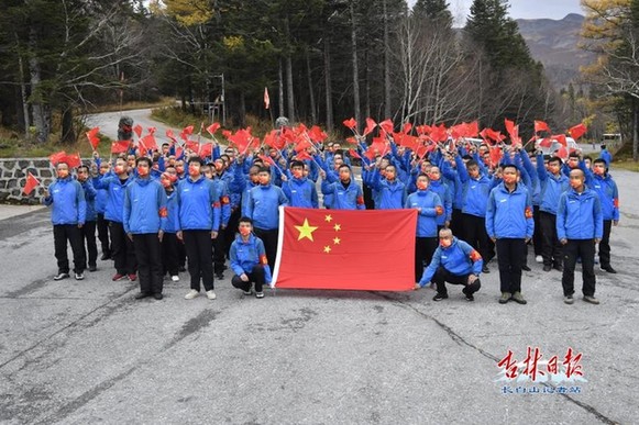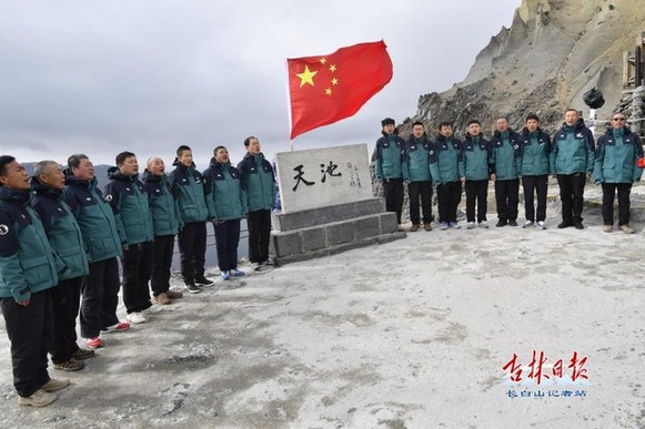 正在天池主峰崗位上默默工作的全國勞動模范吳金明,也在東北最高峰為祖國母親送上節(jié)日的祝福。他動情地說:“今天是新中國72周年華誕,我祝福偉大祖國經濟更繁榮、人民更幸福、國力更富強。”
