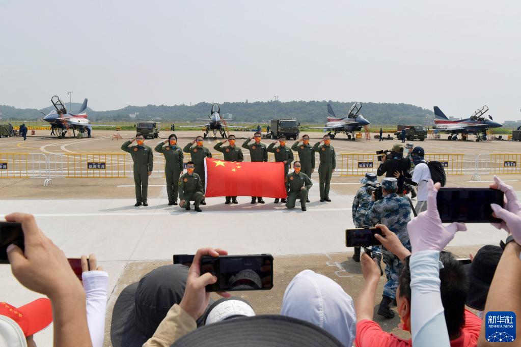 中國航展現(xiàn)場,五星紅旗隨處可見,成為全場最鮮艷的顏色。藍天之上,戰(zhàn)鷹向祖國報告:空軍官兵堅決捍衛(wèi)國家主權(quán),堅決捍衛(wèi)祖國統(tǒng)一,堅定維護世界和平?! ⌒氯A社記者劉濟美、高玉嬌、劉一諾