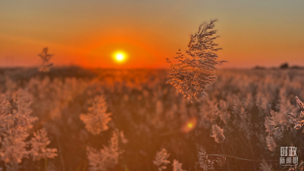 △夕陽灑向蘆花,柔和靜謐。(總臺(tái)央視記者李煒、彭漢明拍攝)