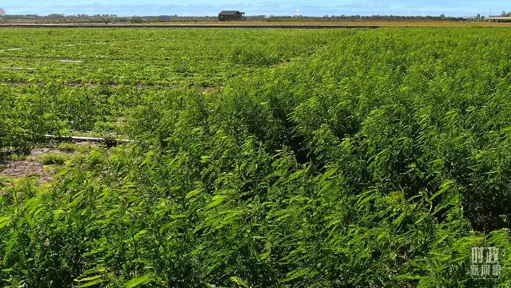△黃河三角洲農(nóng)高區(qū)。田菁是耐鹽堿綠肥作物,能夠促進鹽堿地用養(yǎng)結(jié)合。(總臺記者韓森拍攝)