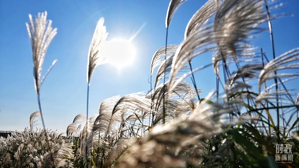 △黃河口濕地,成片蘆花隨風(fēng)擺動。(總臺央視記者程鋮拍攝)