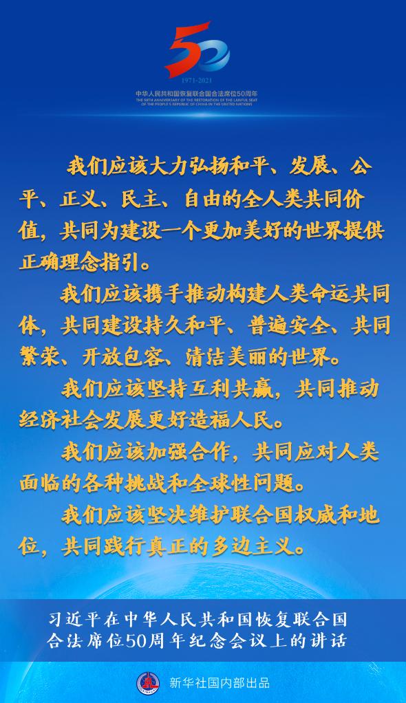 10月25日,習(xí)近平主席在北京出席中華人民共和國恢復(fù)聯(lián)合國合法席位50周年紀(jì)念會(huì)議并發(fā)表重要講話。約20分鐘的講話,“共同”一詞出現(xiàn)了24次。