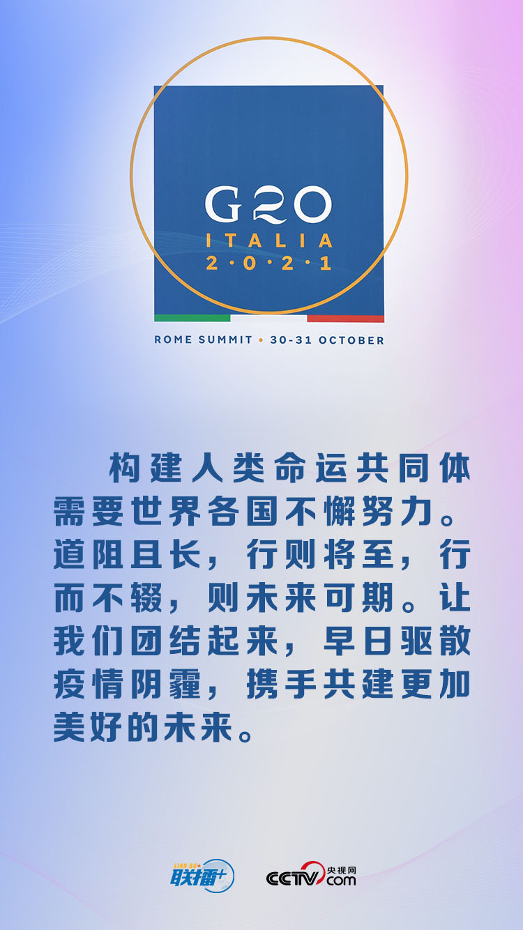 習(xí)主席強(qiáng)調(diào),面對(duì)世界百年未有之大變局和世紀(jì)疫情,二十國(guó)集團(tuán)作為國(guó)際經(jīng)濟(jì)合作主要論壇,要負(fù)起應(yīng)有責(zé)任,為了人類未來(lái)、人民福祉,堅(jiān)持開放包容、合作共贏,踐行真正的多邊主義,推動(dòng)構(gòu)建人類命運(yùn)共同體。