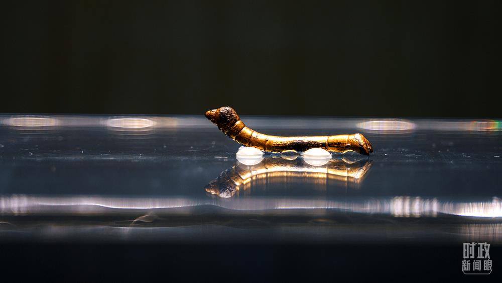 △中國(guó)陜西歷史博物館珍藏的千年“鎏金銅蠶”。習(xí)近平總書記曾在2017年“一帶一路”國(guó)際合作高峰論壇開幕式上提到,“鎏金銅蠶”見證了古人開辟陸上絲綢之路的歷史。(圖/視覺(jué)中國(guó))