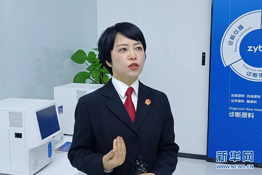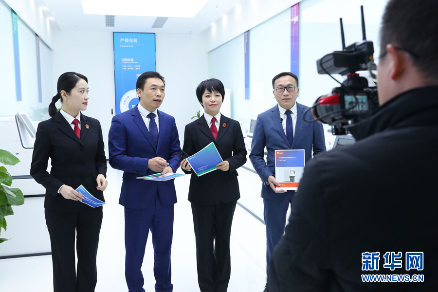 圖為直播中,企業(yè)技術(shù)負(fù)責(zé)人介紹企業(yè)的相關(guān)產(chǎn)品以及知識產(chǎn)權(quán)保護(hù)相關(guān)情況。新華網(wǎng)發(fā)(吳川嬌 攝)