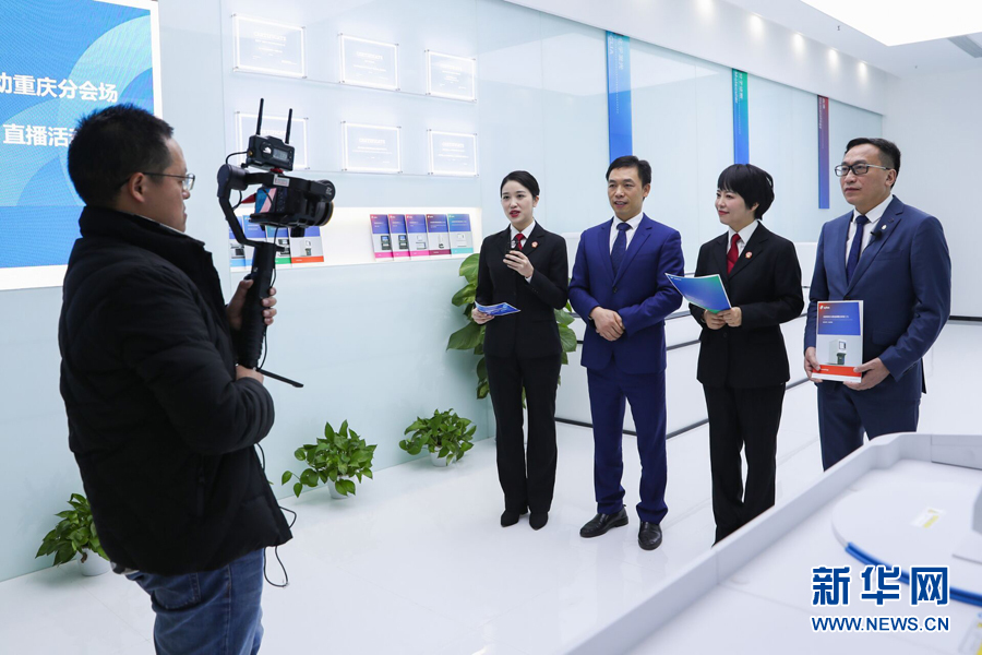 重慶知識產(chǎn)權(quán)法庭副庭長譚穎在直播中向網(wǎng)友普及知識產(chǎn)權(quán)保護(hù)的相關(guān)法律知識。新華網(wǎng)發(fā)(吳川嬌 攝)