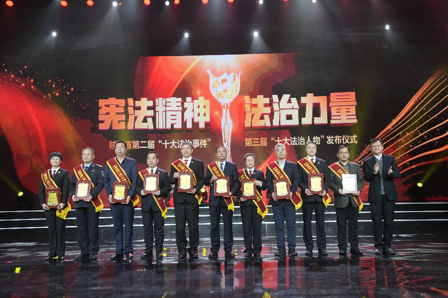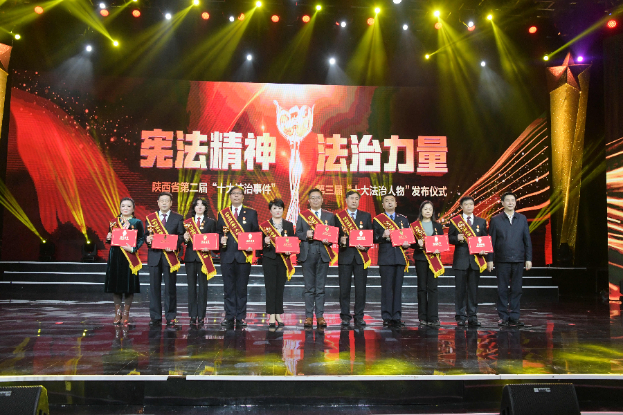 發(fā)布儀式現(xiàn)場播放了“十大法治事件”“十大法治人物”及提名獎(jiǎng)的先進(jìn)事跡短片,揭曉了陜西省第二屆“十大法治事件”、第三屆“十大法治人物”及提名獎(jiǎng)獲得者。“全國首創(chuàng)黨委(黨組)書記點(diǎn)評(píng)法治工作機(jī)制切實(shí)夯實(shí)‘一把手’履行法治建設(shè)責(zé)任”等10個(gè)事件被評(píng)為第二屆“十大法治事件”、“陜西出臺(tái)自由貿(mào)易試驗(yàn)區(qū)條例助推自貿(mào)區(qū)高質(zhì)量發(fā)展”等10個(gè)事件被評(píng)為第二屆“十大法治事件”提名獎(jiǎng),西安交通大學(xué)法學(xué)院二級(jí)教授馬治國等10名同志被評(píng)為第三屆“十大法治人物”、咸陽市中級(jí)人民法院速裁中心主任李春麗等10名同志被評(píng)為第三屆“十大法治人物”提名獎(jiǎng)。