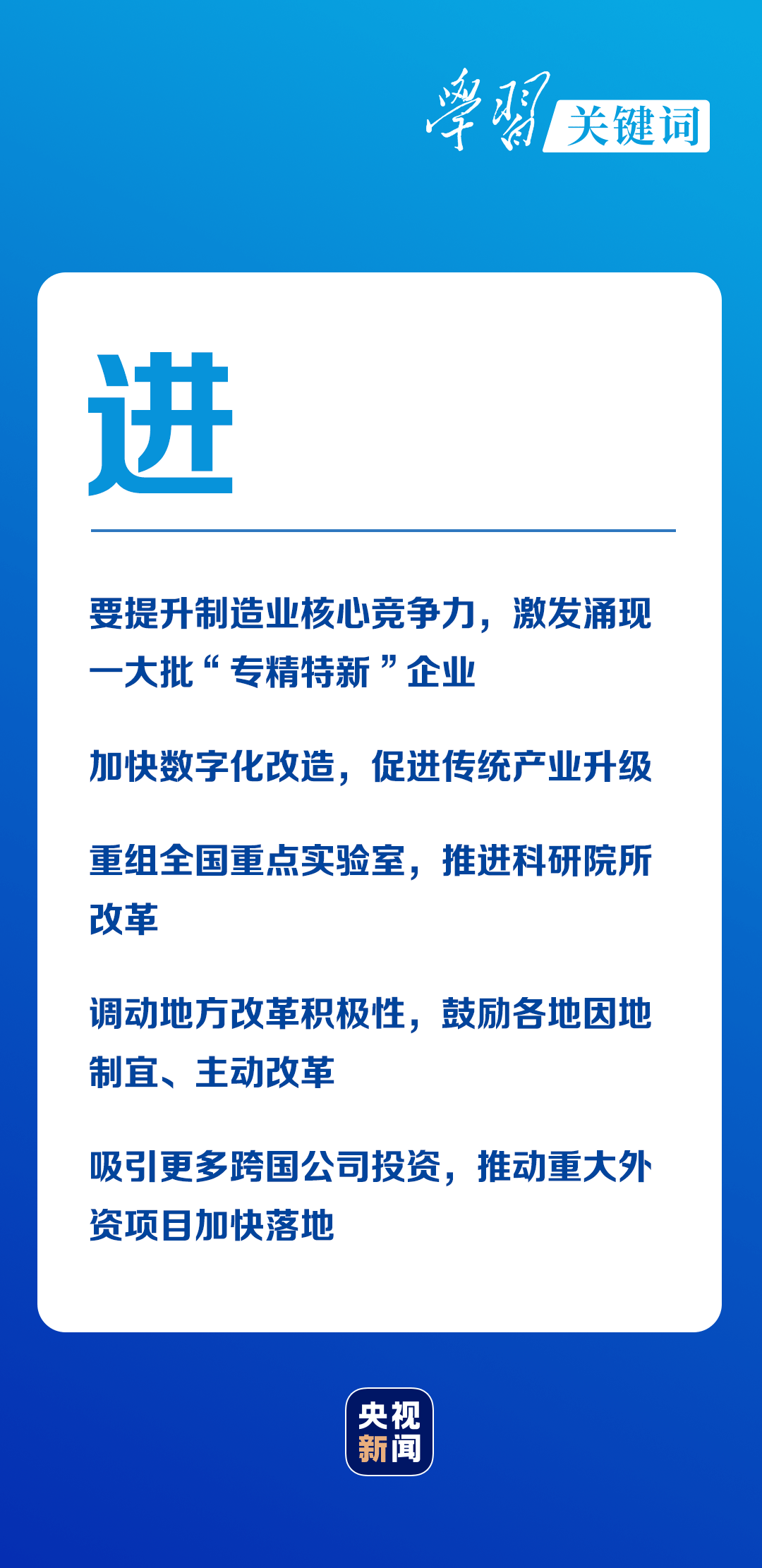 要深化重點領域改革、更大激發(fā)市場活力和發(fā)展內生動力、運用市場化機制激勵企業(yè)創(chuàng)新投入、擴大高水平開放......穩(wěn)中求進,穩(wěn)是主調,是大局;而進是方向,是目標。