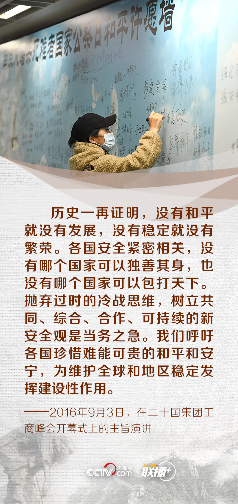 昭昭前事,惕惕后人;永矢弗諼,祈愿和平。在第八個南京大屠殺死難者國家公祭日來臨之際,央視網《聯播+》特梳理黨的十八大以來總書記關于銘記歷史、珍愛和平的重要論述,與您一同緬懷逝者,堅定維護和平的決心。
