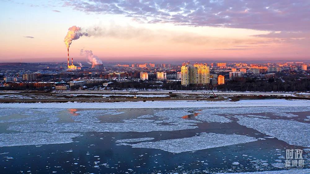 △2021年12月,中俄界江黑龍江黑河段江面上,冰排浩浩蕩蕩。(圖/視覺(jué)中國(guó))