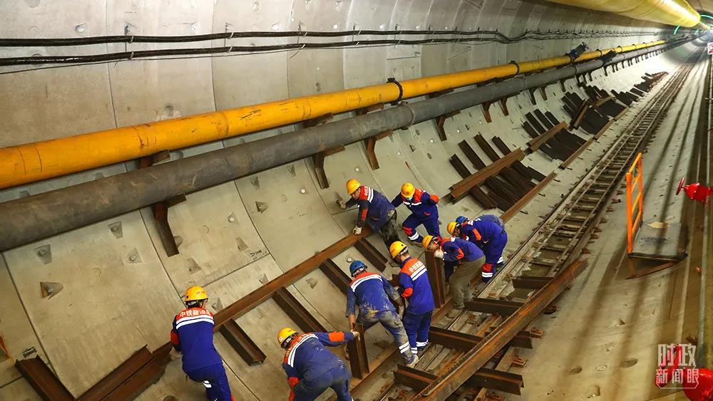 △2021年12月,施工人員在長(zhǎng)江盾構(gòu)穿越工程隧道內(nèi)安裝施工道岔。這一工程是中俄東線天然氣管道的“咽喉”項(xiàng)目。(圖/視覺(jué)中國(guó))