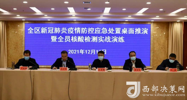 西部決策網(wǎng)訊(韓宗憲 通訊員 陳珊珊)12月17日,寶雞市鳳翔區(qū)新冠肺炎疫情防控應(yīng)急處置桌面推演暨全員核酸檢測實戰(zhàn)演練在白玉蘭酒店舉行。鳳翔區(qū)疫情防控專班、區(qū)疫情防控相關(guān)部門、各鎮(zhèn)、區(qū)流行病學調(diào)查組各成員單位等參加演練。區(qū)委區(qū)政府主要領(lǐng)導現(xiàn)場觀摩了本次實戰(zhàn)演練。