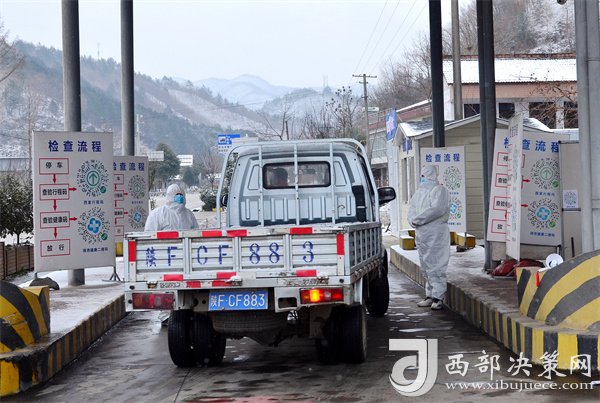 12月26日,寧強(qiáng)縣漢源街道辦工作人員正在黃壩驛檢測(cè)點(diǎn)查驗(yàn)車(chē)輛和人員