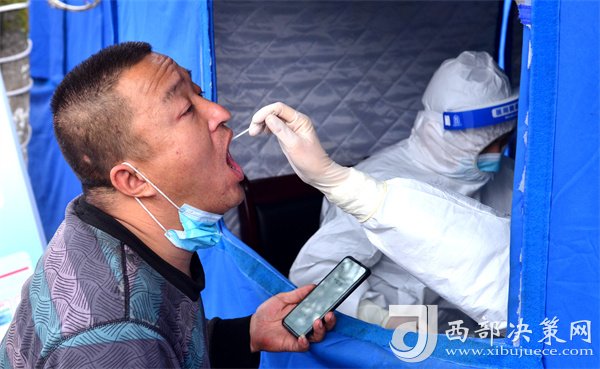 12月26日,醫(yī)護(hù)人員正在寧強(qiáng)縣城南門(mén)檢測(cè)點(diǎn)給來(lái)寧人員核酸采樣
