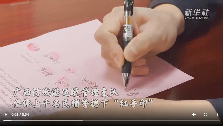 廣西防城港邊境管理支隊(duì)上千名民輔警集體遞交“戰(zhàn)疫請(qǐng)戰(zhàn)書(shū)”,主動(dòng)要求向抗疫最前線靠攏。他們繼續(xù)選擇逆行,奔赴國(guó)門(mén)口岸、邊境卡口、村寨社區(qū),始終奮戰(zhàn)在最前線,維護(hù)檢測(cè)現(xiàn)場(chǎng)秩序,保障救援力量通行,強(qiáng)化邊境巡邏防控。“請(qǐng)戰(zhàn)書(shū)”上的一個(gè)個(gè)“紅手印”,見(jiàn)證忠誠(chéng)。