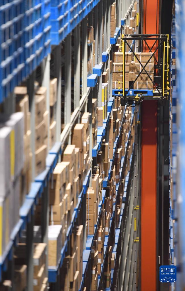 在陜藥集團(tuán)派昂醫(yī)藥公司的立體庫(kù)內(nèi),藥品通過(guò)堆垛機(jī)入庫(kù)(12月28日攝)。新華社記者 邵瑞 攝