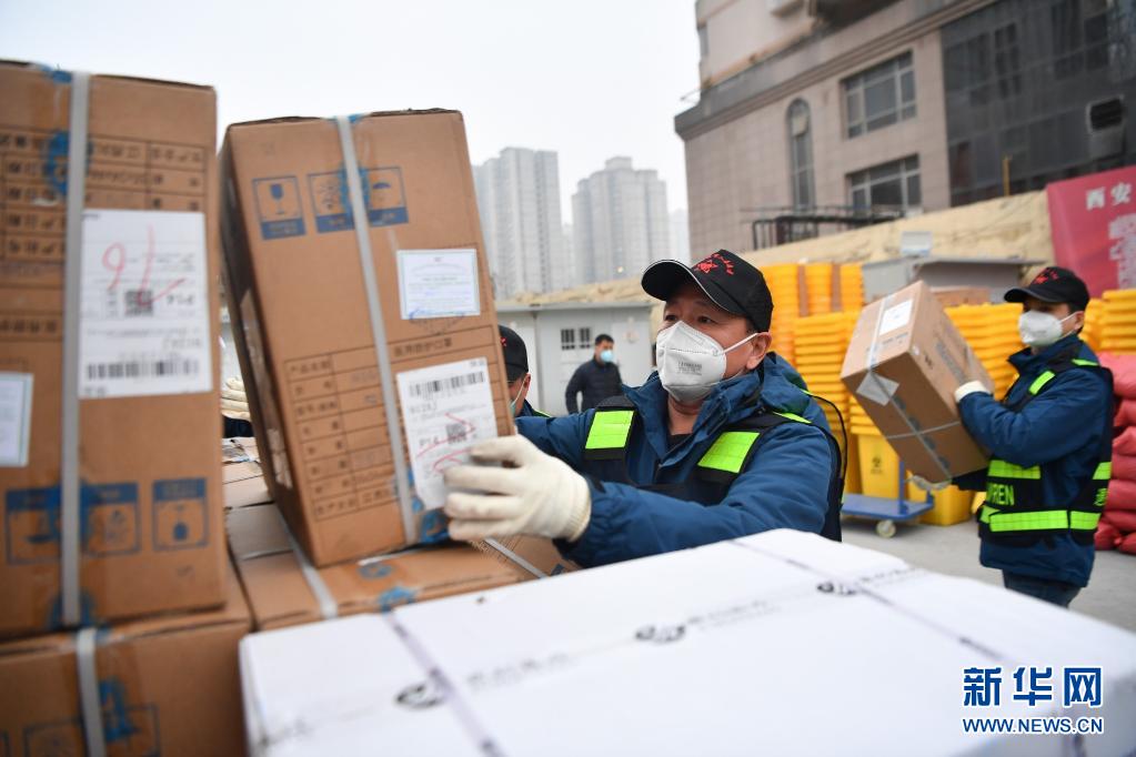 退役軍人志愿突擊隊(duì)隊(duì)員搬運(yùn)防疫物資。新華社記者 張博文 攝