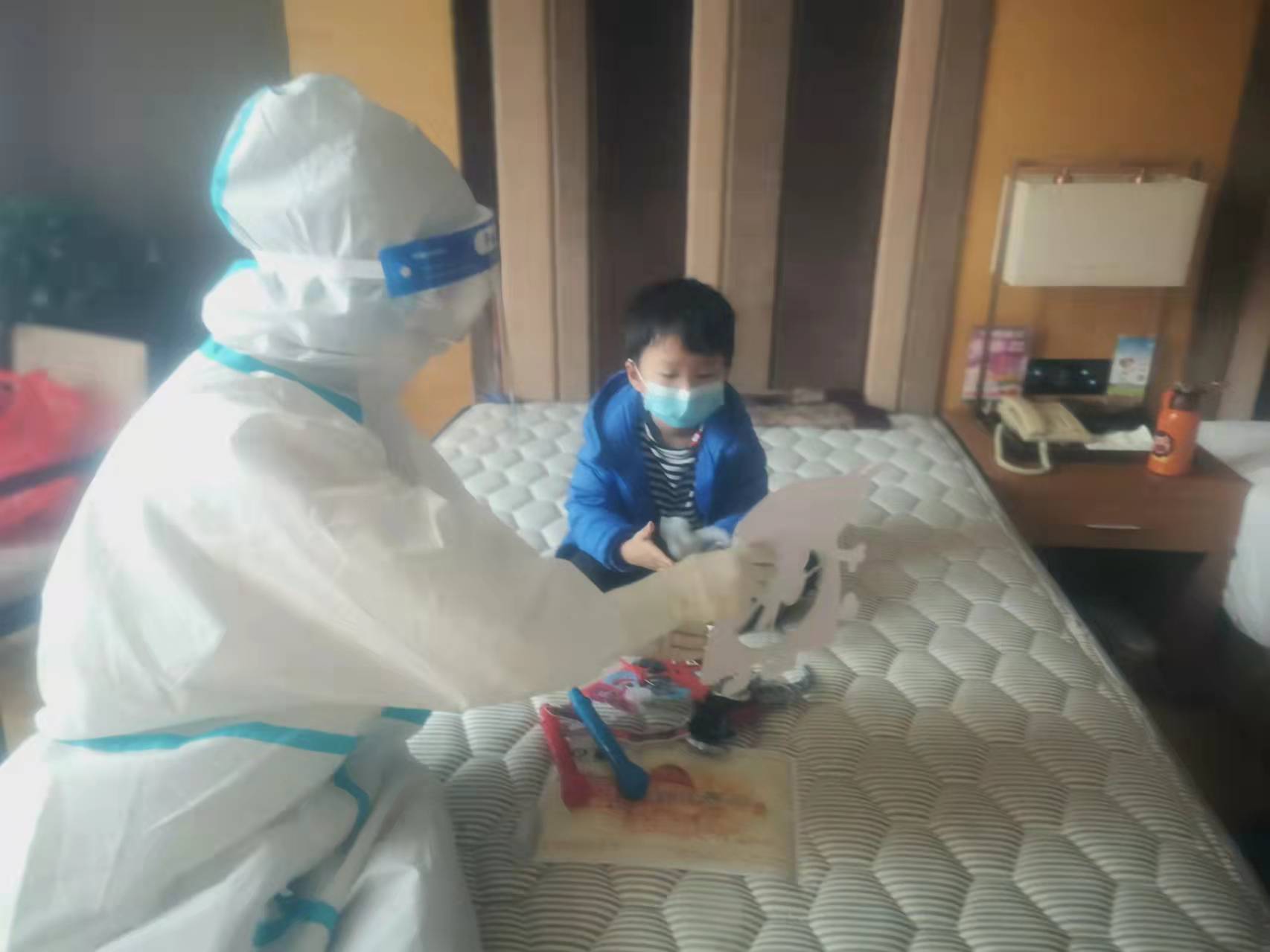 隔離在酒店的豆豆連續(xù)多輪的核酸采集均為陰性,在長安區(qū)醫(yī)院的醫(yī)護人員劉列平和常芬照看陪伴下,他每日都會和爸爸、媽媽視頻聊天。