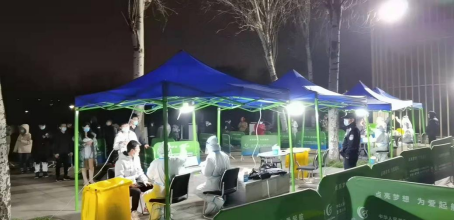 檢測(cè)過程中,所有檢測(cè)人員都身著防護(hù)服,為了節(jié)約醫(yī)療物資,避免讓大家在寒風(fēng)中等待,志愿者幾乎不吃飯、不喝水,連續(xù)工作直到檢測(cè)結(jié)束。也正因?yàn)橛辛怂麄兊膱?jiān)守,西電疫情防控工作才有了堅(jiān)強(qiáng)保障。