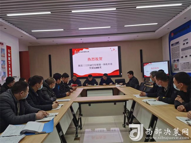 為鼓勵掘進(jìn)先鋒,樹立快掘典范。12月31日下午,公司副總工程師左影輝、機電物資中心經(jīng)理高永軍、副經(jīng)理楊輝在掘進(jìn)三工區(qū)學(xué)習(xí)室就此次成績進(jìn)行表彰并作出重要指示,工區(qū)在崗人員全部參會。