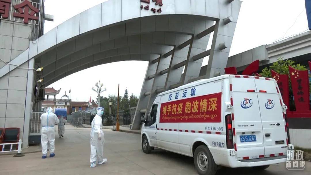 △2022年1月12日,中國向緬甸援助新冠疫苗交付儀式在孟連口岸舉行。運輸車上的“胞波”二字,在緬語中意為“一母同胞的兄弟”。(圖/視覺中國)