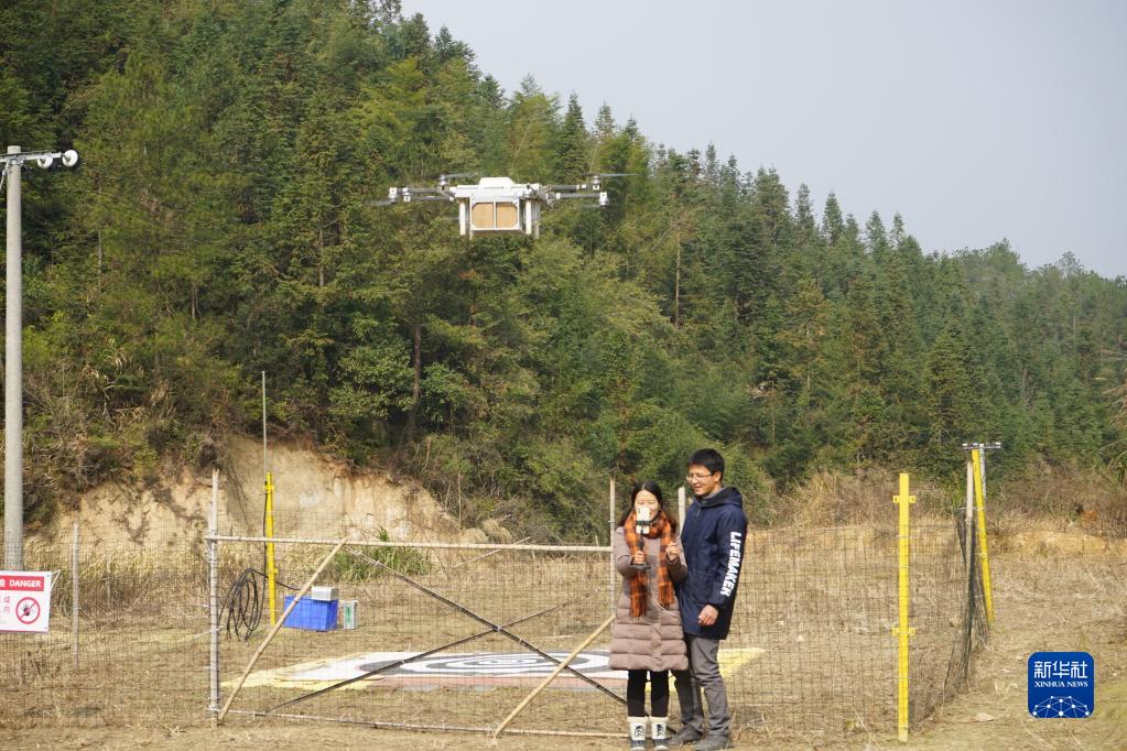 伴隨著螺旋槳的嗡鳴聲,約兩米長(zhǎng)的無(wú)人機(jī)載著打包好的土雞、雞蛋從機(jī)坪上穩(wěn)穩(wěn)升空,飛往山外的無(wú)人機(jī)運(yùn)營(yíng)中心。