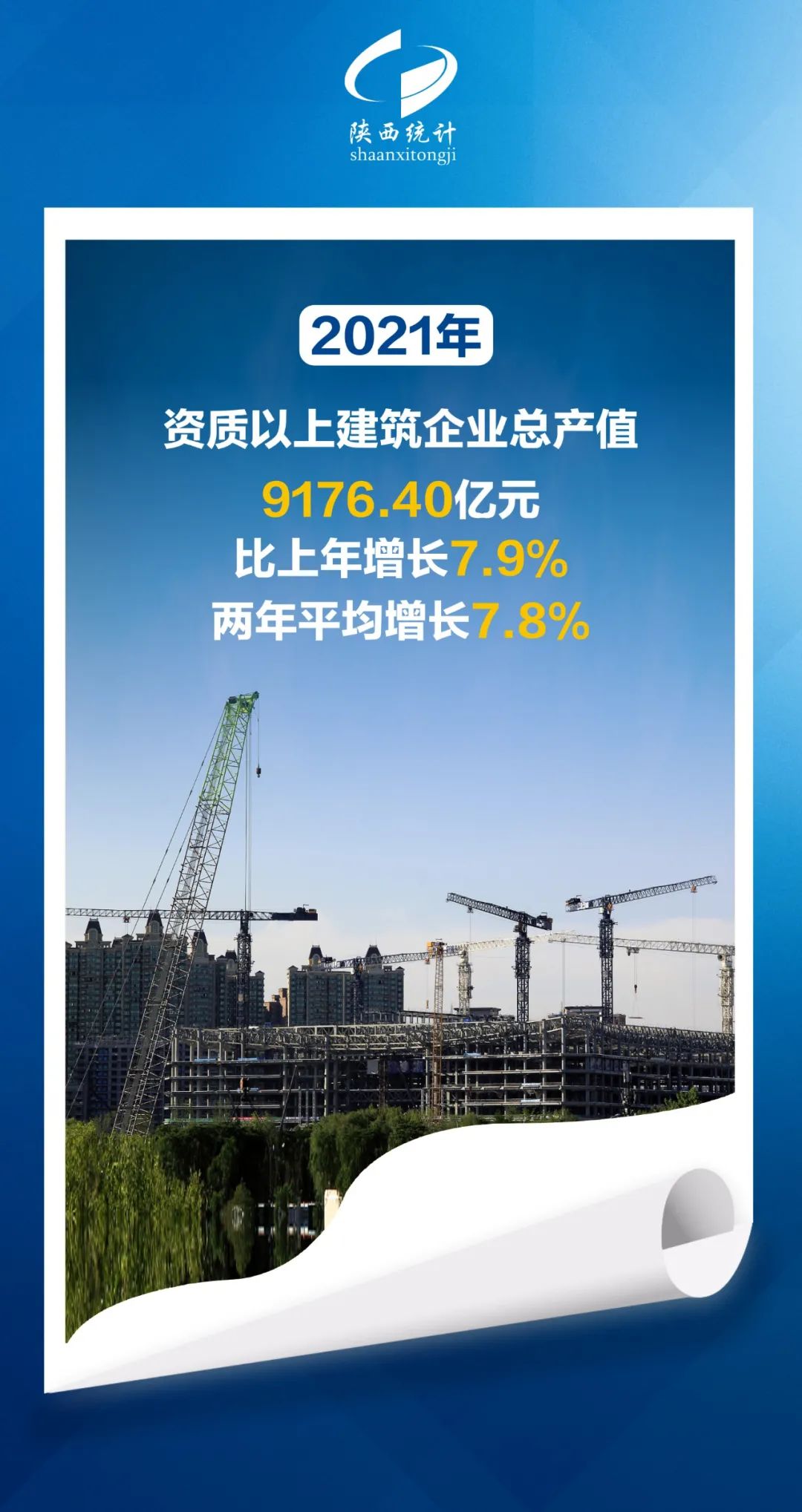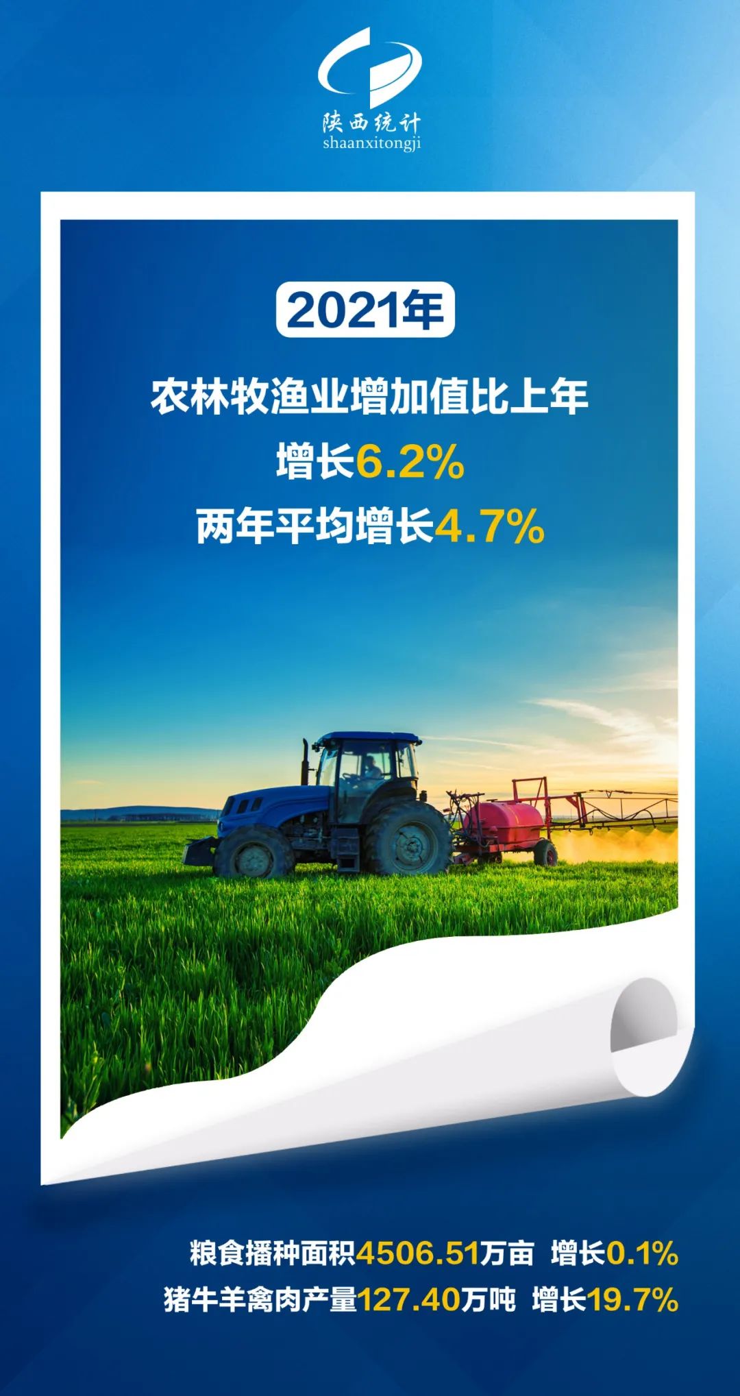 今天(1月19日),陜西省統(tǒng)計(jì)局發(fā)布2021年陜西國(guó)民經(jīng)濟(jì)運(yùn)行情況。根據(jù)地區(qū)生產(chǎn)總值統(tǒng)一核算結(jié)果,2021年,全省實(shí)現(xiàn)地區(qū)生產(chǎn)總值29800.98億元,按不變價(jià)格計(jì)算,比上年增長(zhǎng)6.5%,兩年平均增長(zhǎng)4.3%。其中,第一產(chǎn)業(yè)增加值2409.39億元,增長(zhǎng)6.3%,兩年平均增長(zhǎng)4.8%;第二產(chǎn)業(yè)13802.52億元,增長(zhǎng)5.6%,兩年平均增長(zhǎng)3.4%;第三產(chǎn)業(yè)13589.07億元,增長(zhǎng)7.3%,兩年平均增長(zhǎng)4.9%。