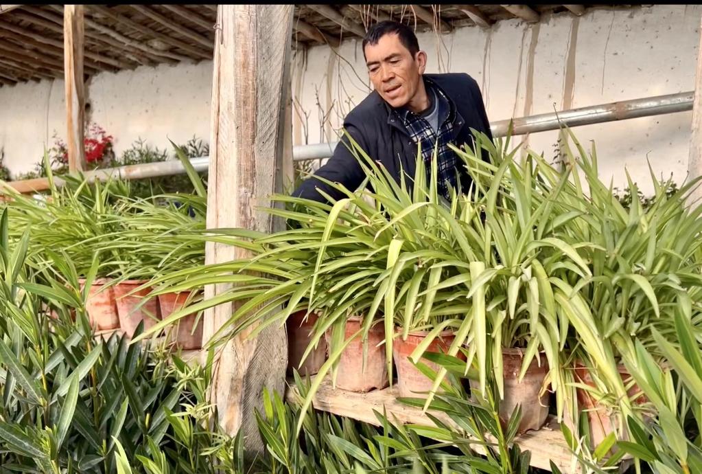 寒冬臘月,室外氣溫達(dá)零下10多攝氏度,奧圖拉庫(kù)勒達(dá)西村農(nóng)民艾力·艾合買(mǎi)提家前院450平方米的大棚里,卻是春意盎然,20多種花卉苗生機(jī)勃勃。“現(xiàn)在南疆農(nóng)村老百姓很喜歡買(mǎi)花擺在家里,像這種艾德萊斯花、每日春、蘆葦花,賣(mài)得特別好。”他告訴記者,今年打算繼續(xù)擴(kuò)大花卉品種。