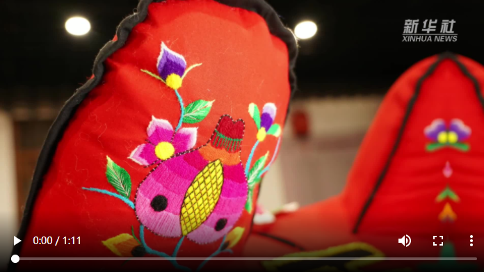 春節(jié)前夕,陜西省寶雞市千陽縣組織繡娘制作了一只長1.85米的布老虎,喜迎農(nóng)歷虎年。