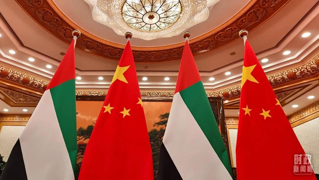 △阿拉伯聯(lián)合酋長(zhǎng)國(guó)國(guó)旗與五星紅旗。(總臺(tái)央視記者楊立峰拍攝)