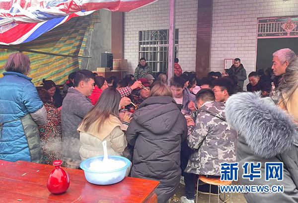 2月7日,當地農歷虎年的第一場壩壩宴。新華網發(fā)(譚俊 攝)