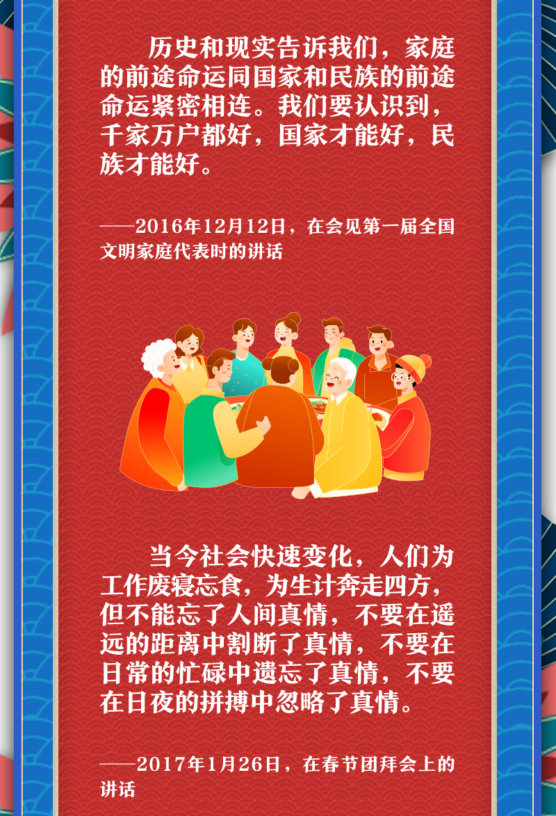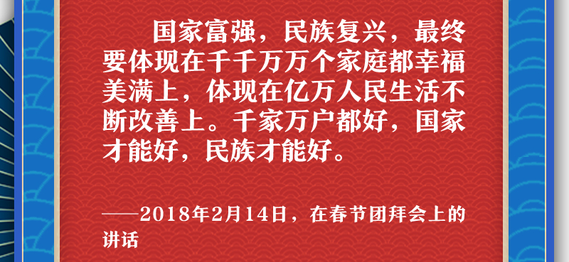 他提醒大家,把實(shí)現(xiàn)家庭夢融入民族夢之中,心往一處想,勁往一處使。