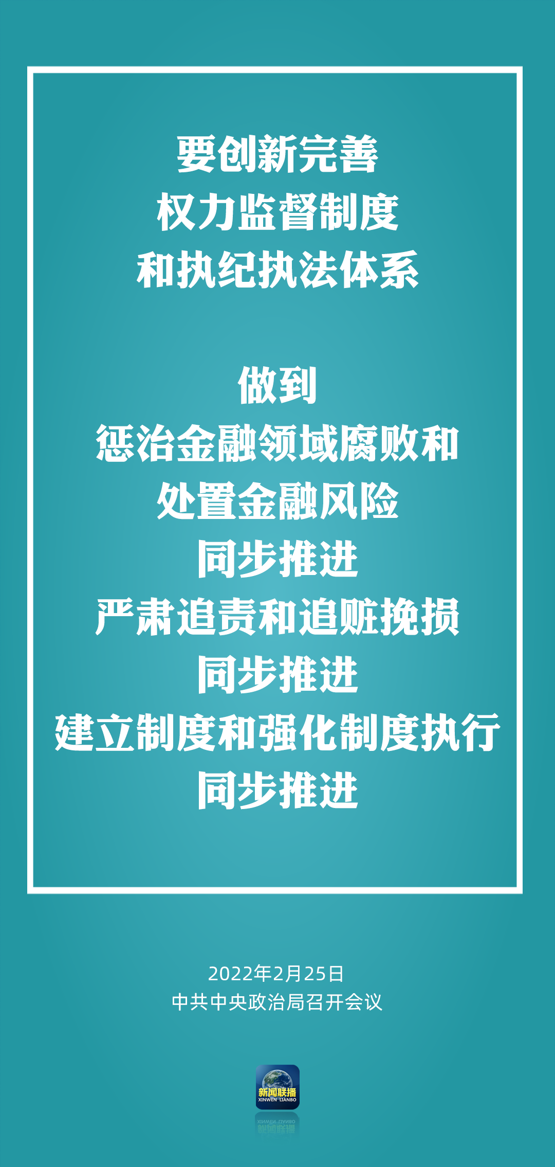 會(huì)議強(qiáng)調(diào),要強(qiáng)化黨中央對(duì)金融工作的集中統(tǒng)一領(lǐng)導(dǎo),堅(jiān)定不移走好中國特色金融發(fā)展之路。要強(qiáng)化金融風(fēng)險(xiǎn)防控,堅(jiān)決維護(hù)金融穩(wěn)定大局。要強(qiáng)化全面從嚴(yán)治黨嚴(yán)的氛圍,落實(shí)“兩個(gè)責(zé)任”,加強(qiáng)對(duì)“一把手”和領(lǐng)導(dǎo)班子的監(jiān)督,對(duì)違反中央八項(xiàng)規(guī)定精神、政商“旋轉(zhuǎn)門”等典型共性問題開展專項(xiàng)整治,一體推進(jìn)不敢腐、不能腐、不想腐。要?jiǎng)?chuàng)新完善權(quán)力監(jiān)督制度和執(zhí)紀(jì)執(zhí)法體系,做到懲治金融領(lǐng)域腐敗和處置金融風(fēng)險(xiǎn)同步推進(jìn)、嚴(yán)肅追責(zé)和追贓挽損同步推進(jìn)、建立制度和強(qiáng)化制度執(zhí)行同步推進(jìn)。要深入貫徹新時(shí)代黨的組織路線,強(qiáng)化領(lǐng)導(dǎo)班子隊(duì)伍建設(shè)。要深入推進(jìn)金融領(lǐng)域改革,不斷提高金融治理體系和治理能力現(xiàn)代化水平。