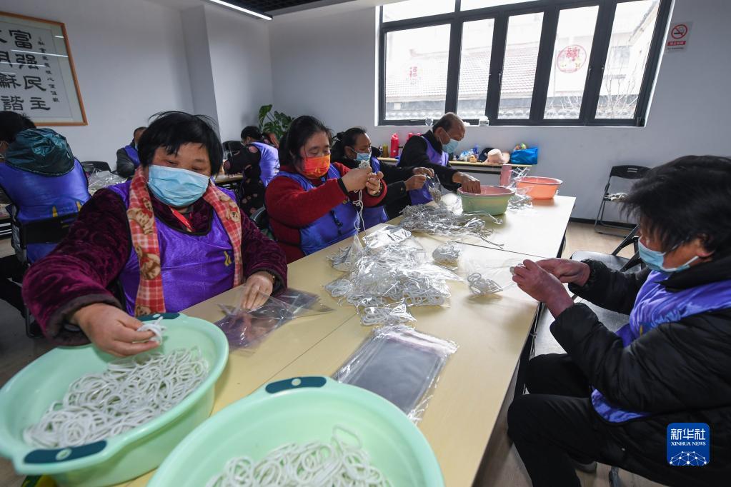 在浙江湖州市織里鎮(zhèn)港西村殘疾人之家,來(lái)自周邊的殘疾人正在打包配件(2022年2月22日攝)。完成工作后,他們可以獲得相應(yīng)報(bào)酬和補(bǔ)貼。新華社記者 徐昱 攝