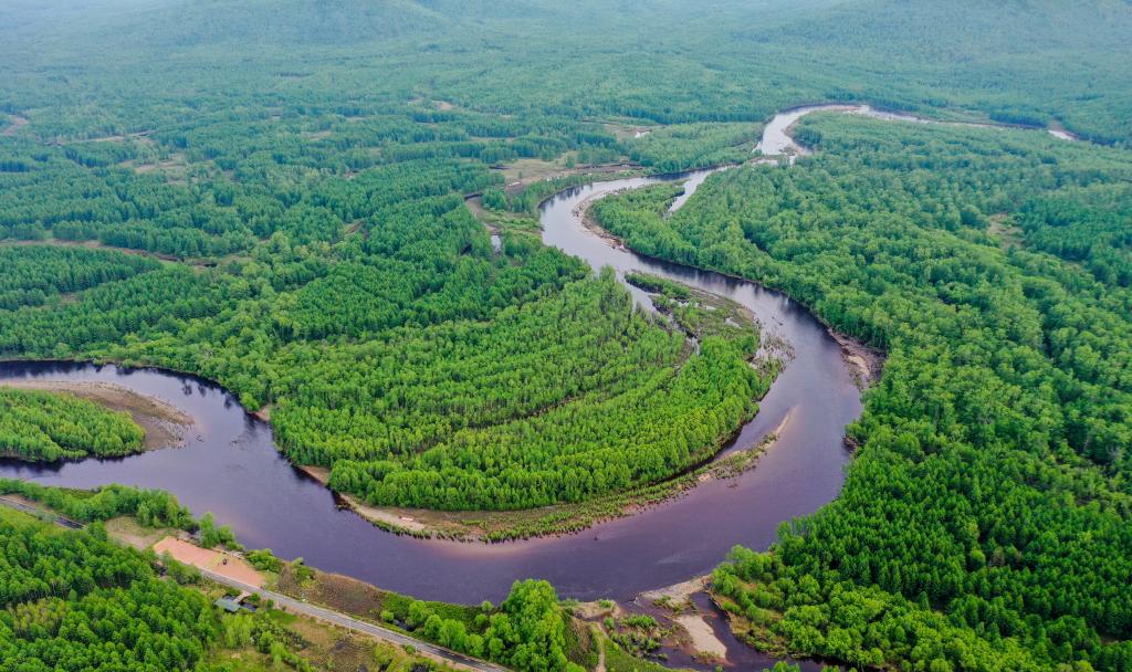 這是內(nèi)蒙古呼倫貝爾根河源國(guó)家濕地公園景色(無人機(jī)照片,2021年6月8日攝)。新華社記者 連振 攝