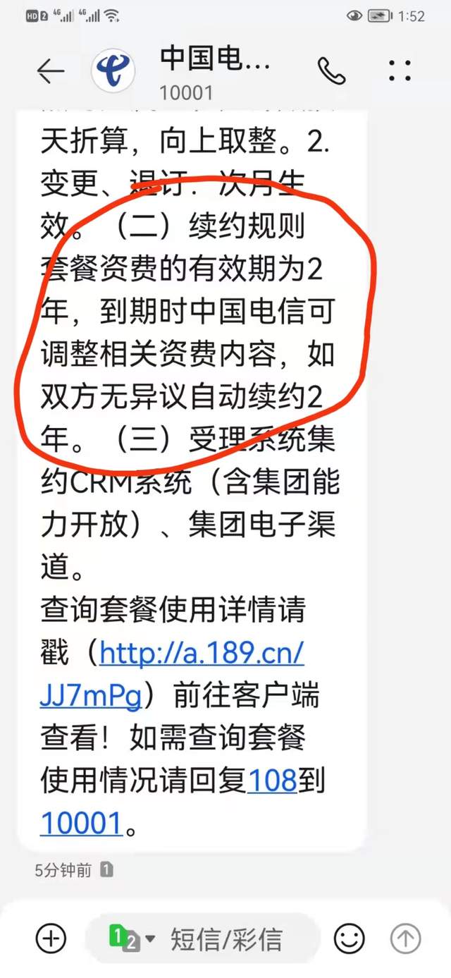 我當時辦理業(yè)務的時候,電信業(yè)務員給我說的是套餐兩年不變,也沒說不能轉網(wǎng)。而且我的套餐詳情里續(xù)約規(guī)則顯示套餐資費的有效期為2年,到期時中國電信可調整相關資費內容,如雙方無異議自動續(xù)約2年。
