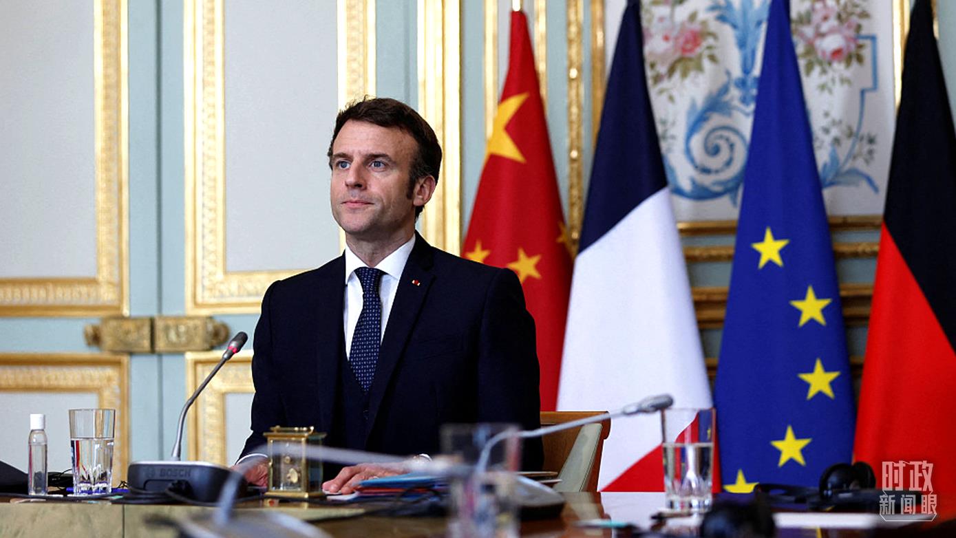 △2022年3月8日,法國(guó)總統(tǒng)馬克龍出席中法德領(lǐng)導(dǎo)人視頻峰會(huì)。(圖/視覺(jué)中國(guó))
