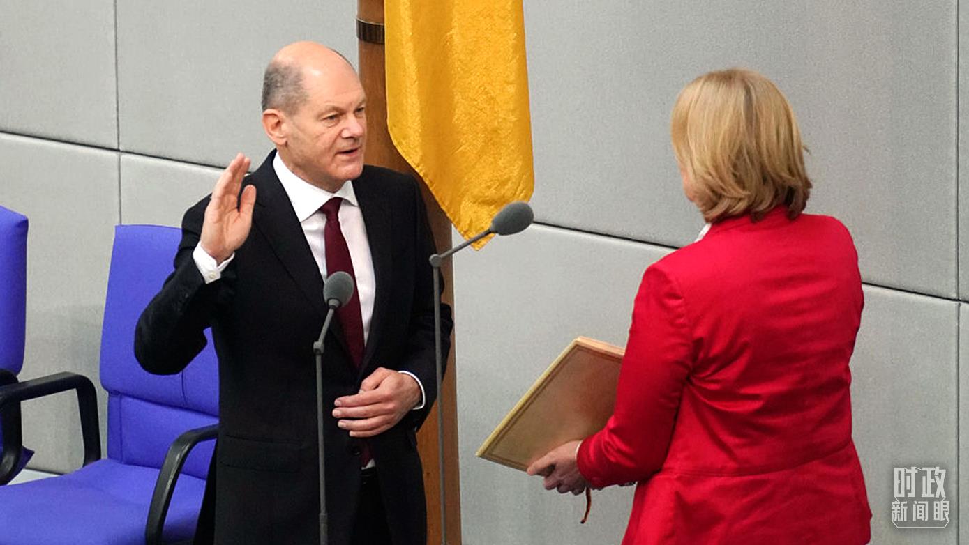△2021年12月8日,德國(guó)新任總理朔爾茨在德國(guó)聯(lián)邦議院宣誓就職。(圖/視覺(jué)中國(guó))