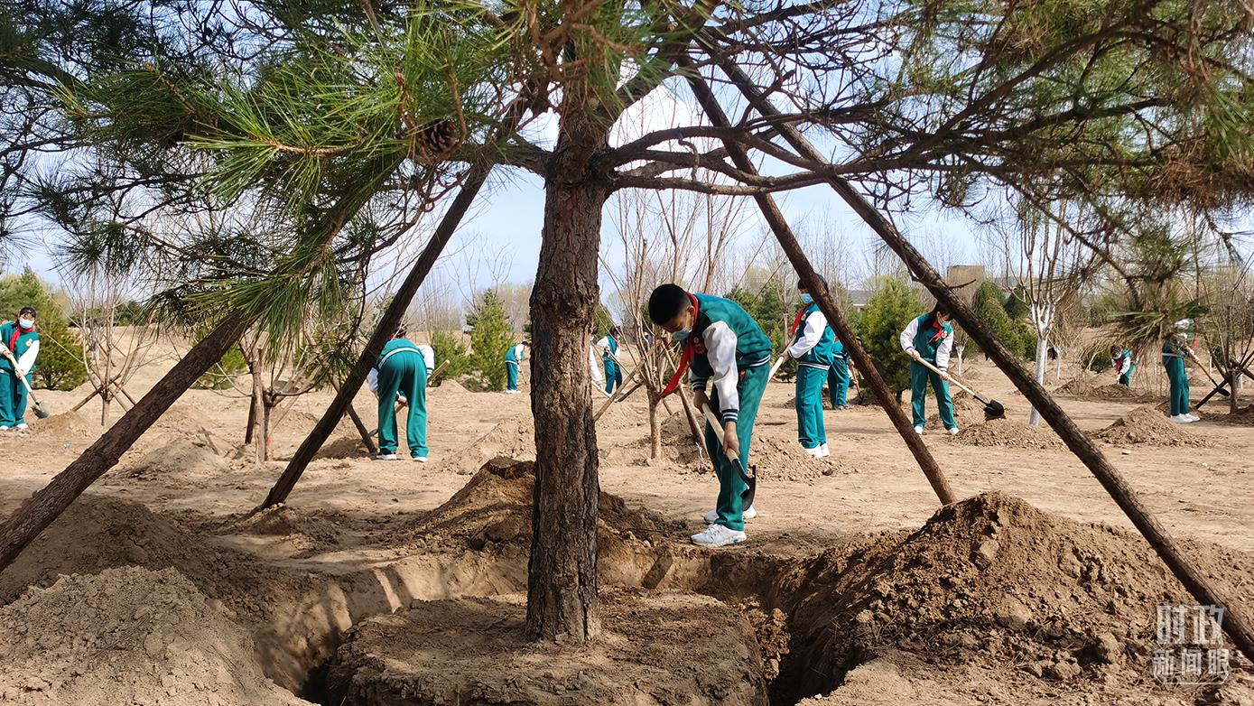 △當天的義務植樹現(xiàn)場。(總臺央視記者張宇、趙鵬拍攝)