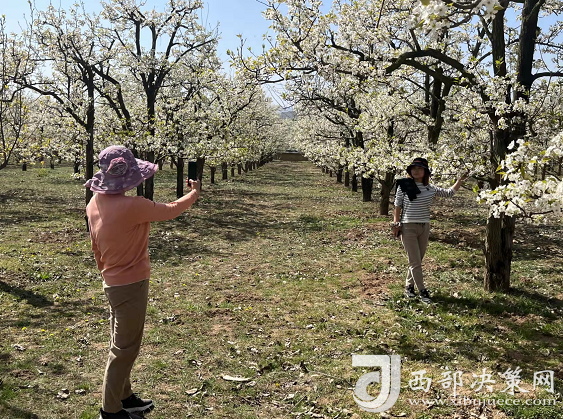 慕名而來(lái)的游客們漫步花海,賞花、留影,梨園中處處歡聲笑語(yǔ),歡樂(lè)又浪漫的氛圍讓人流連忘返。