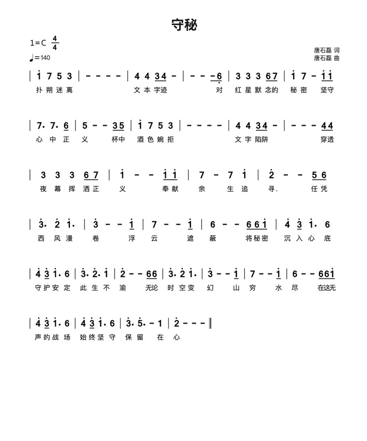 慶祝建黨百年獲獎歌曲作品選集——《守秘》詞曲。