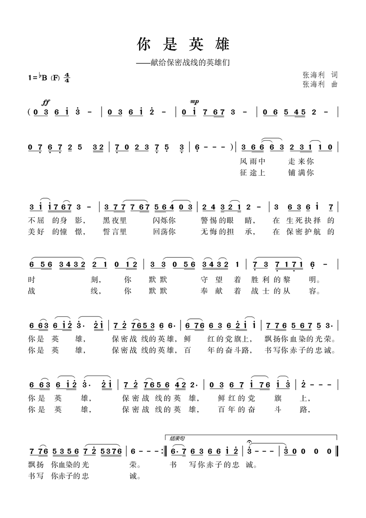 慶祝建黨百年獲獎歌曲作品選集——《你是英雄》詞曲。