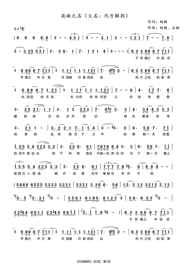 慶祝建黨百年獲獎(jiǎng)歌曲作品選集——《英雄無名》歌詞。