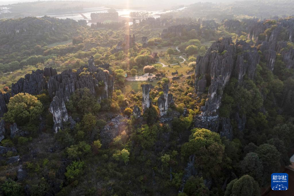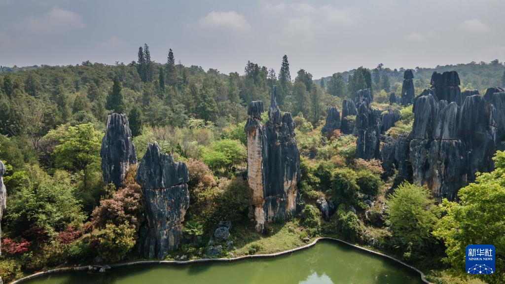 這是4月10日拍攝的石林景觀(無人機照片)。新華社記者 王冠森 攝