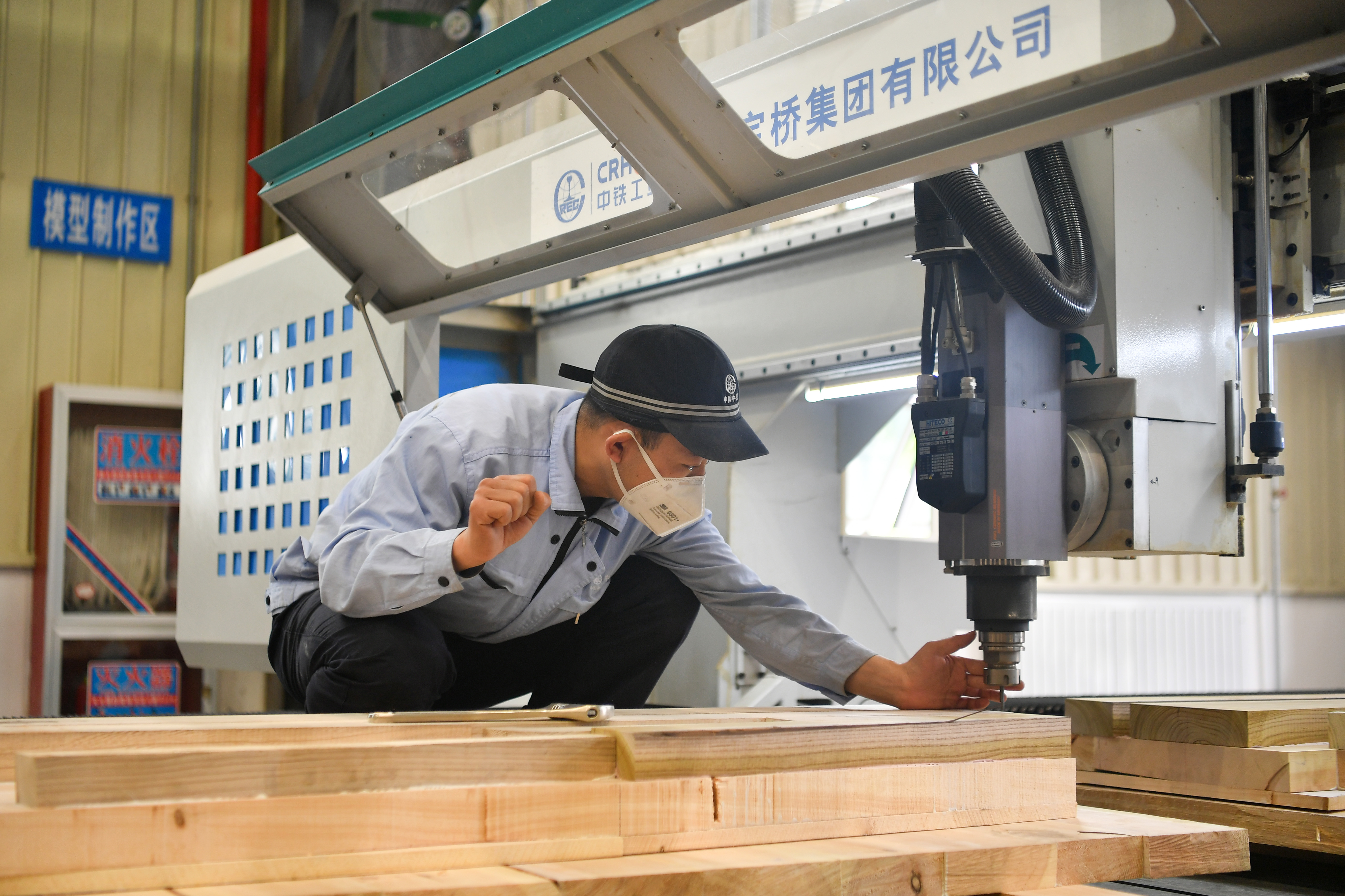 屏氣凝神,33歲的中鐵寶橋集團技工錢歡,小心翼翼地扶著機床上粘合好的三層木板,將刀頭對準畫好的中心線,進行切割。刀頭落下,電光火石間,一段鐵路轍叉的模型在他的操作下逐漸成形。這是裝備制造業(yè)里最常見、也最重要的鑄模環(huán)節(jié)。