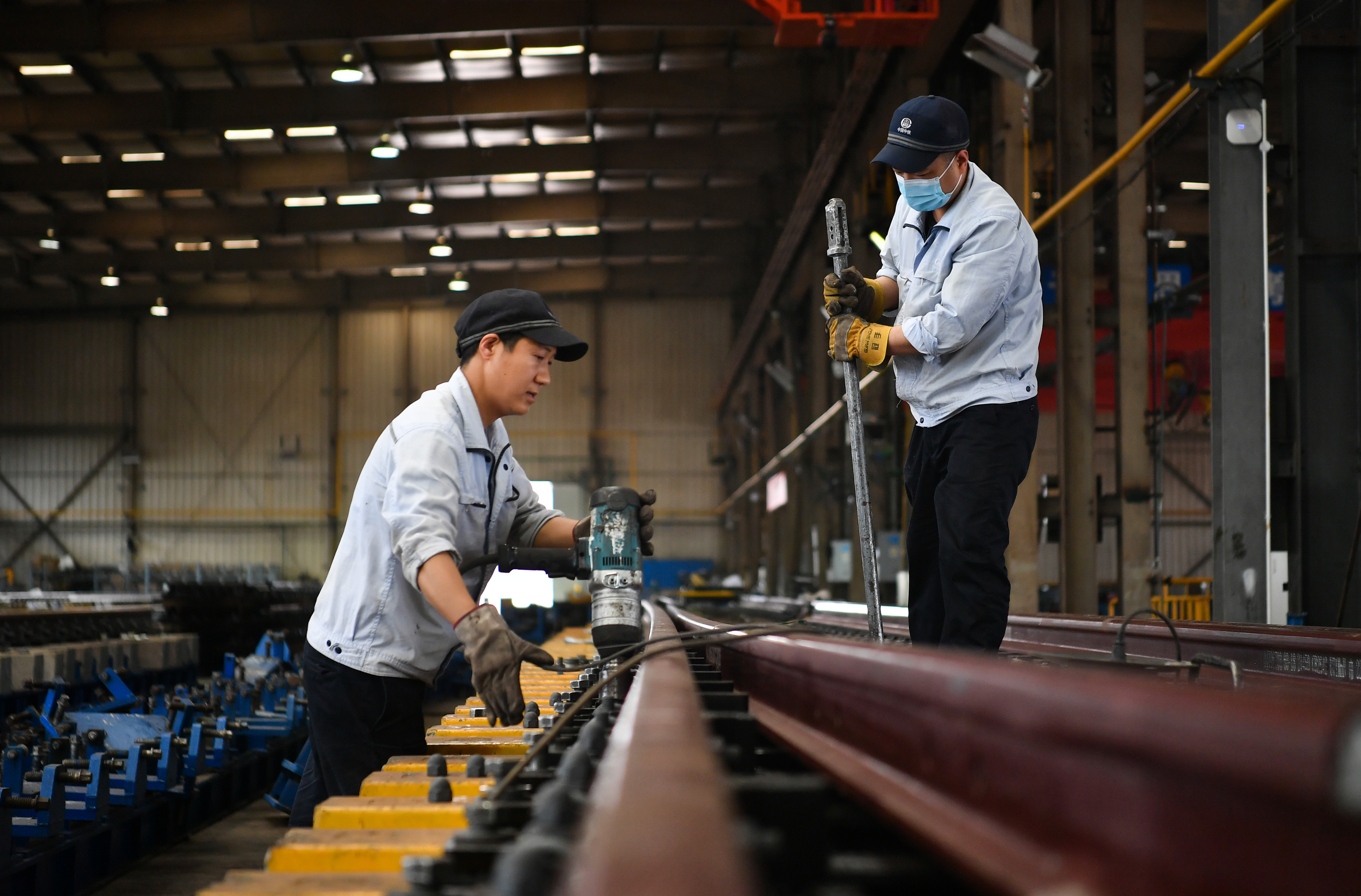工人在中鐵寶橋集團有限公司生產(chǎn)車間工作。新華社記者 張博文 攝