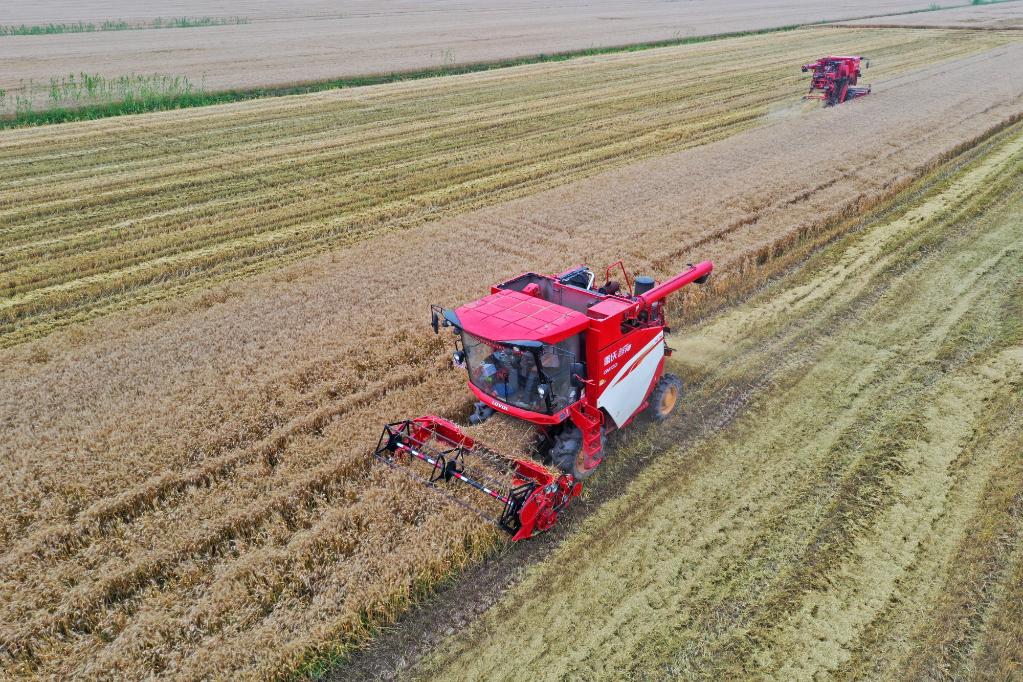 位于安徽省宿松縣的華陽河農場機收小麥現場。新華社發(fā) 李龍 攝